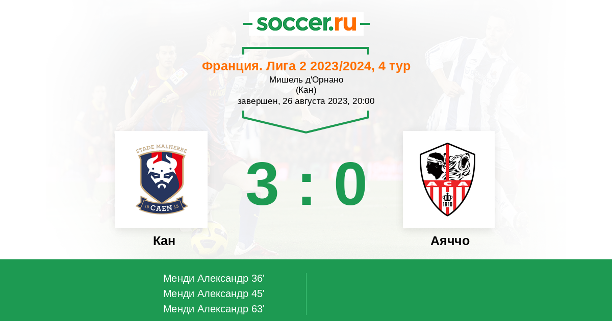 Франция. Лига 2 25.08.2021 Аяччо Логотип футбольный клуб Аяччо 2:0 Логотип футбольный клуб Кан Кан