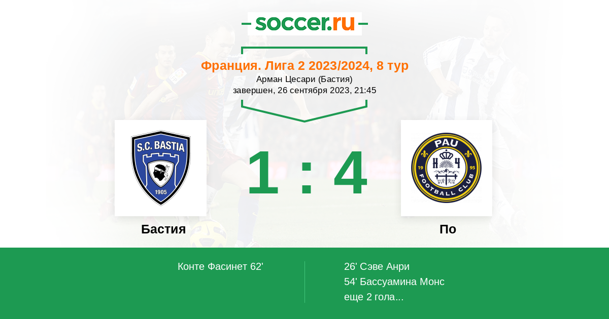 Бастия 13:9 4:3 9:6
