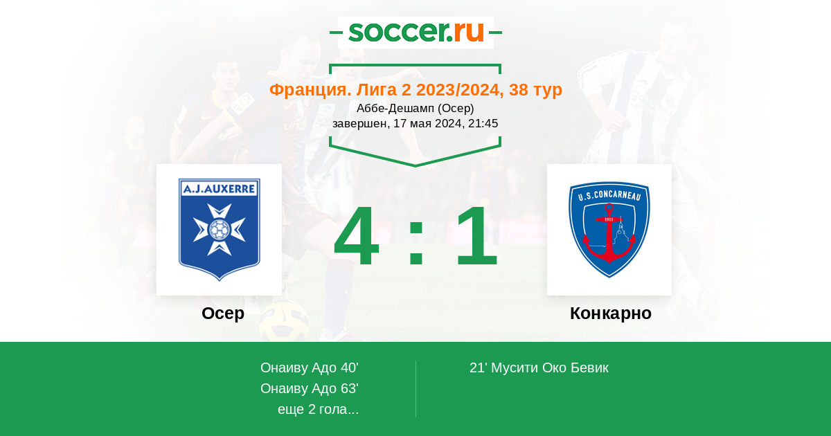 Осер 2:1 0:0 2:1