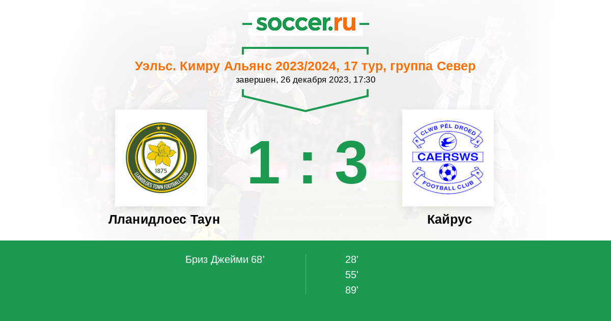 Лланидлоес Таун 0:5 0:0 0:5