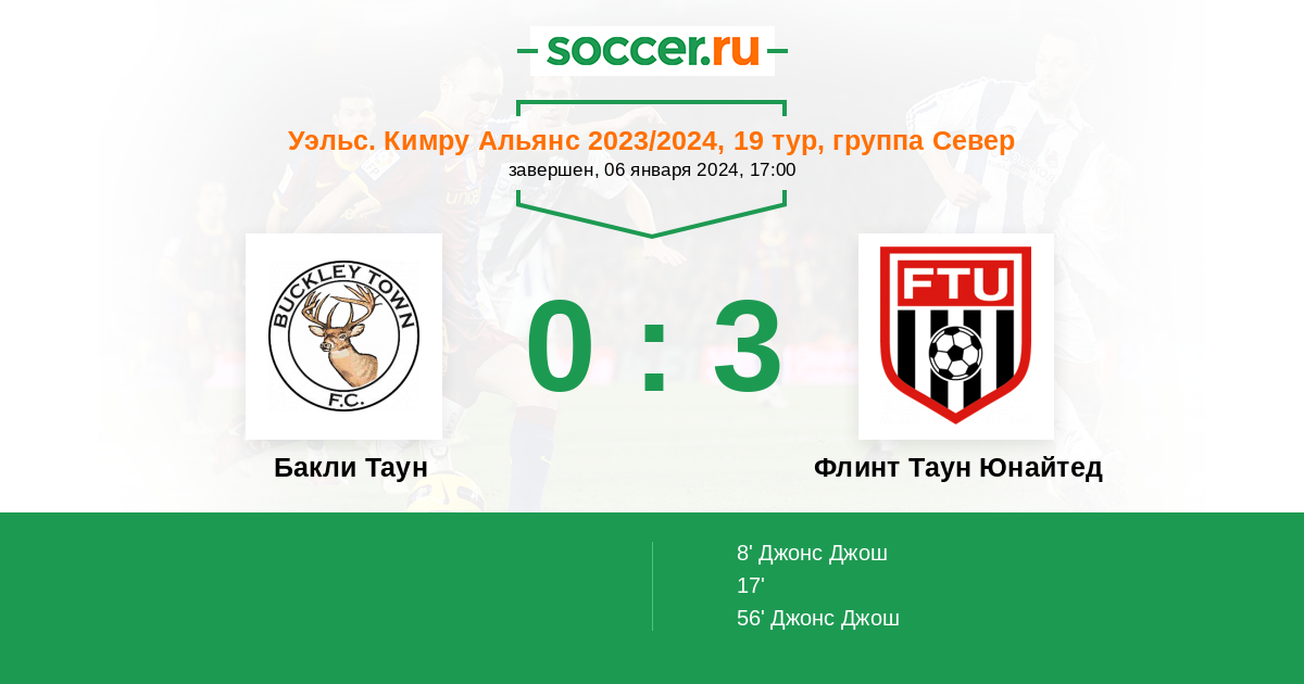 Уэльс. Кубок 02.12.2017 Бакли Таун Логотип футбольный клуб Бакли Таун 0:1 Логотип футбольный клуб Флинт Таун Юнайтед Флинт Таун Юнайтед