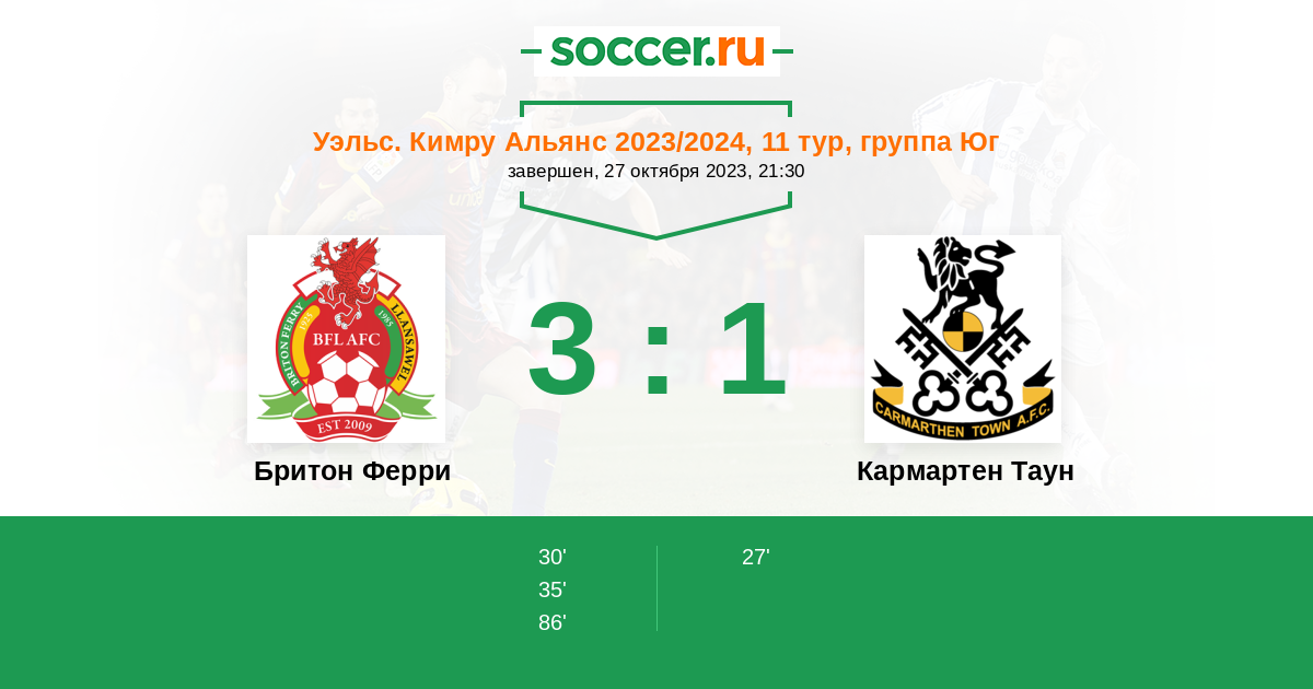 Кармартен Таун 10:9 9:7 1:2
