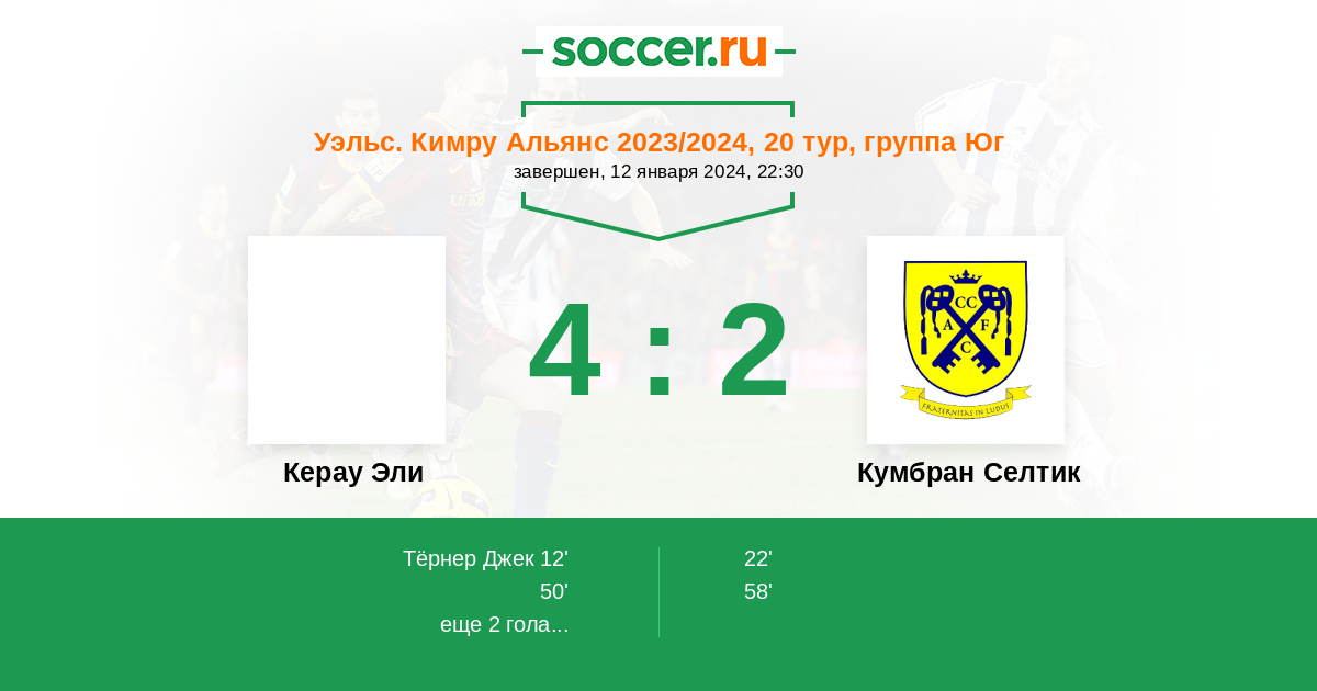 Кумбран Селтик 8:7 6:6 2:1