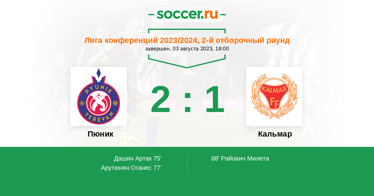 Тут не надо думать кто победит. Пюник забивает в среднем за игру три гола. А Кальмар один гол. Вообще странно что Кальмар в Лиги Конференций. Ведь как я уже говорил что Кальмар забивает один гол ( 0,6) . Ладно оставим этот вопрос. Последние пять матчей. Кальмар одна победа и четыре поражения. Пюник пять побед!!!!!