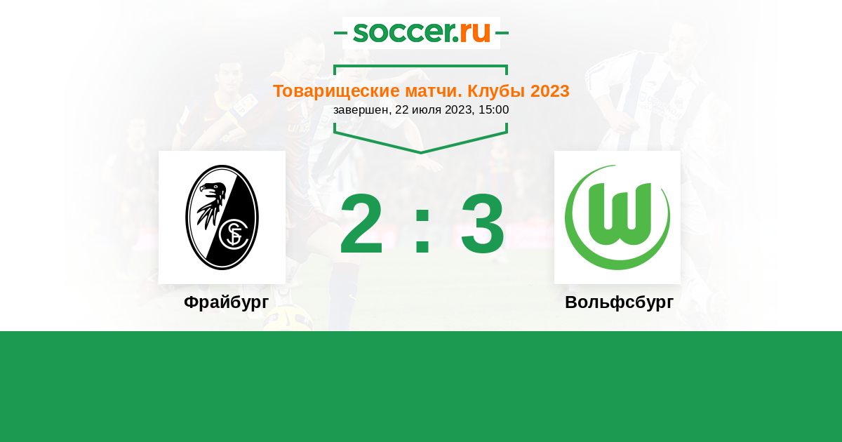 Германия. Бундеслига 21.01.2023 Вольфсбург Логотип футбольный клуб Вольфсбург 6:0 Логотип футбольный клуб Фрайбург Фрайбург