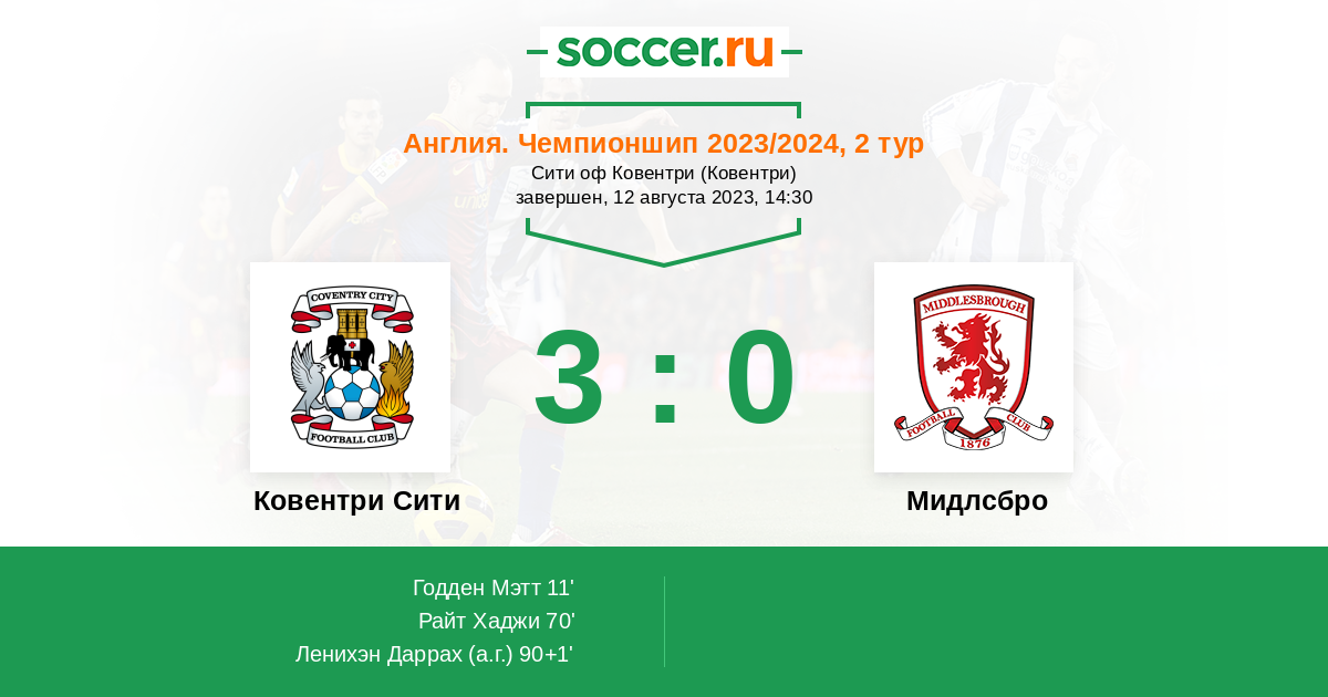 Англия. Чемпионшип 11.09.2021 Ковентри Сити Логотип футбольный клуб Ковентри Сити 2:0 Логотип футбольный клуб Мидлсбро Мидлсбро