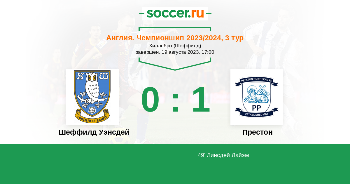 Англия. Чемпионшип 24.08.2019 Престон Логотип футбольный клуб Престон 2:1 Логотип футбольный клуб Шеффилд Уэнсдей Шеффилд Уэнсдей