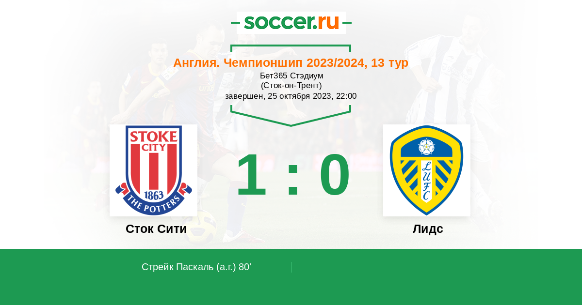 Англия. Чемпионшип 26.12.2024 Сток Сити Логотип футбольный клуб Сток Сити (Сток-он-Трент) 0:2 Логотип футбольный клуб Лидс Лидс