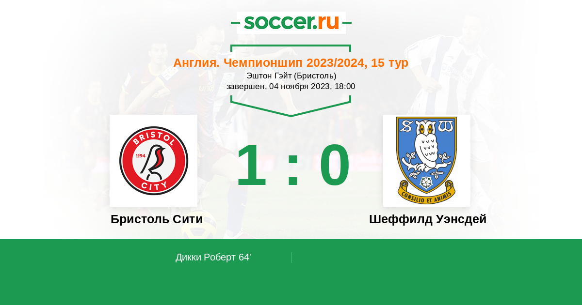 Англия. Чемпионшип 07.10.2018 Бристоль Сити Логотип футбольный клуб Бристоль Сити 1:2 Логотип футбольный клуб Шеффилд Уэнсдей Шеффилд Уэнсдей