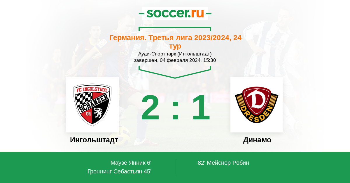 Германия. Третья лига 27.02.2021 Динамо Логотип футбольный клуб Динамо (Дрезден) 4:0 Логотип футбольный клуб Ингольштадт Ингольштадт