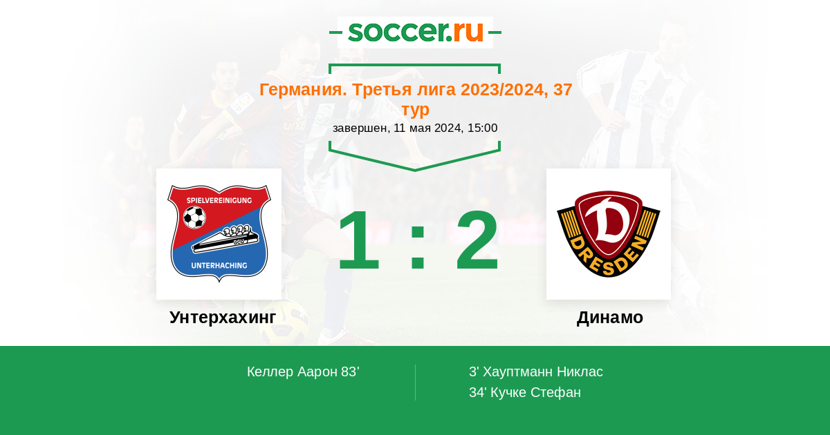 Германия. Третья лига 11.04.2021 Унтерхахинг Логотип футбольный клуб Унтерхахинг 2:0 Логотип футбольный клуб Динамо (Дрезден) Динамо