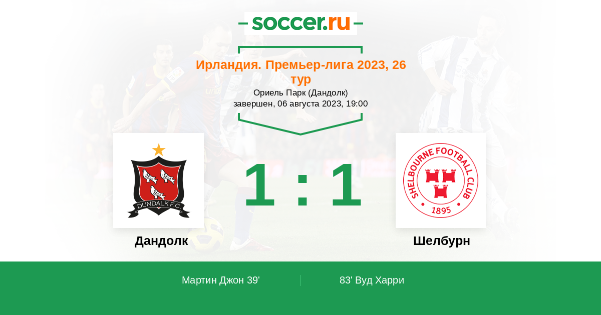 Ирландия. Премьер-лига 06.10.2023 Шелбурн Логотип футбольный клуб Шелбурн (Драмкондра) 1:0 Логотип футбольный клуб Дандолк Дандолк