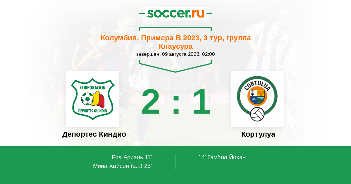Колумбия. Примера B 19.02.2023 Кортулуа Логотип футбольный клуб Кортулуа 2:1 Логотип футбольный клуб Депортес Киндио (Армения) Депортес Киндио