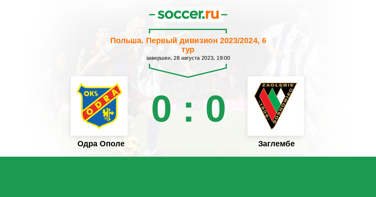Польша. Первый дивизион 29.09.2019 Одра Ополе Логотип футбольный клуб Одра Ополе 1:1 Логотип футбольный клуб Заглембе (Сосновец) Заглембе