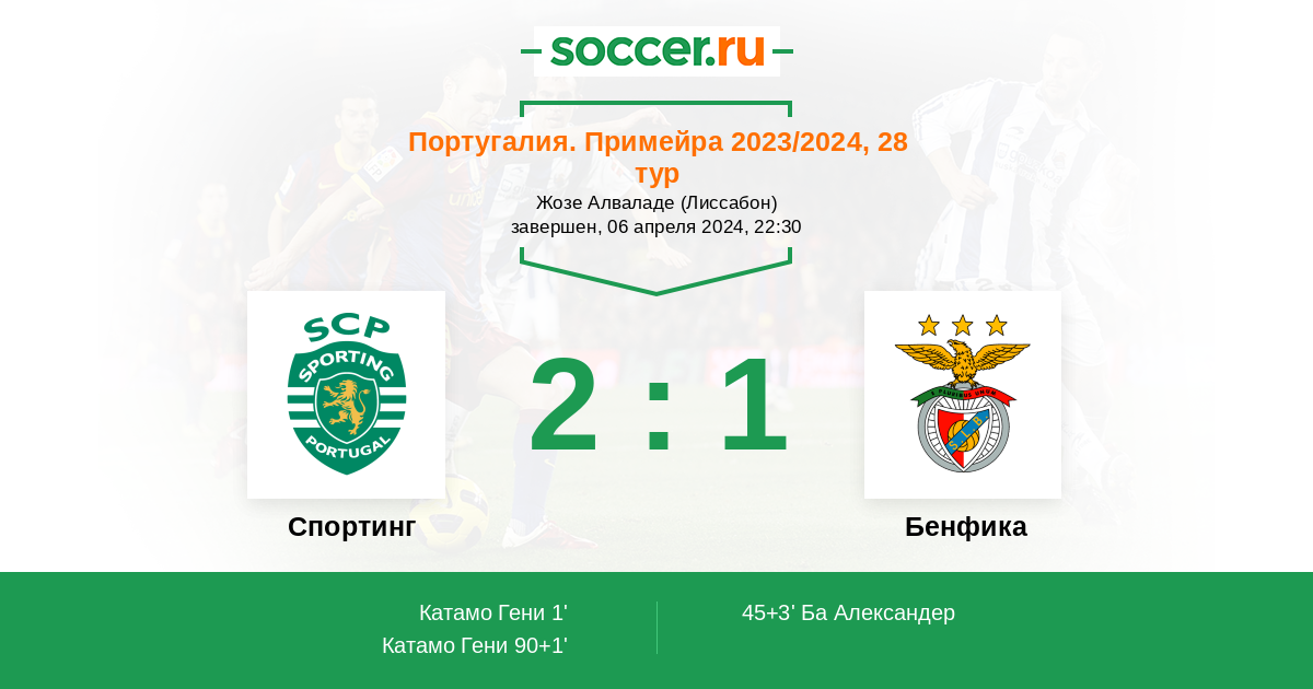 Португалия. Примейра 12.11.2023 Бенфика Логотип футбольный клуб Бенфика (Лиссабон) 2:1 Логотип футбольный клуб Спортинг (Лиссабон) Спортинг