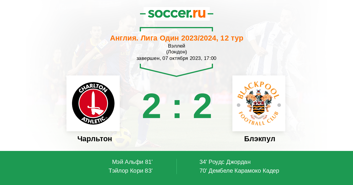 Англия. Первая Футбольная Лига 21.09.2024 Чарльтон Логотип футбольный клуб Чарльтон 1:2 Логотип футбольный клуб Блэкпул Блэкпул