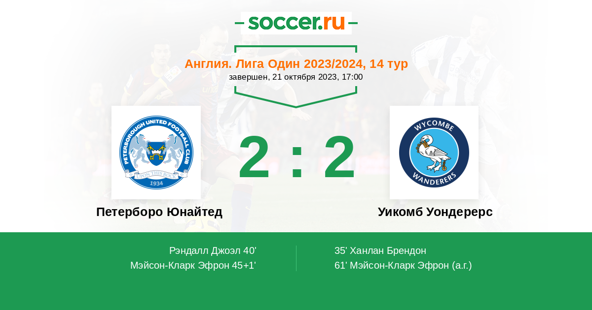 Англия. Первая Футбольная Лига 13.09.2025 Петерборо Юнайтед Логотип футбольный клуб Петерборо Юнайтед 2:1 Логотип футбольный клуб Уикомб Уондерерс (Хай-Вайкомб) Уикомб Уондерерс