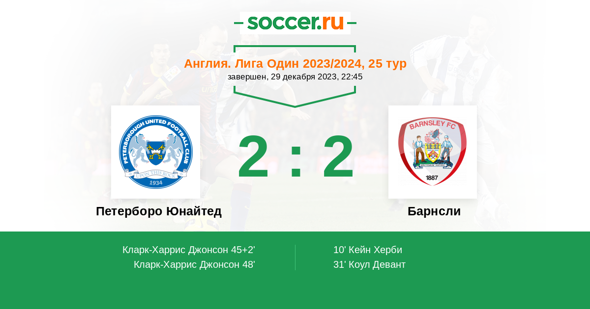 Англия. Первая Футбольная Лига 29.12.2024 Петерборо Юнайтед Логотип футбольный клуб Петерборо Юнайтед 1:3 Логотип футбольный клуб Барнсли Барнсли