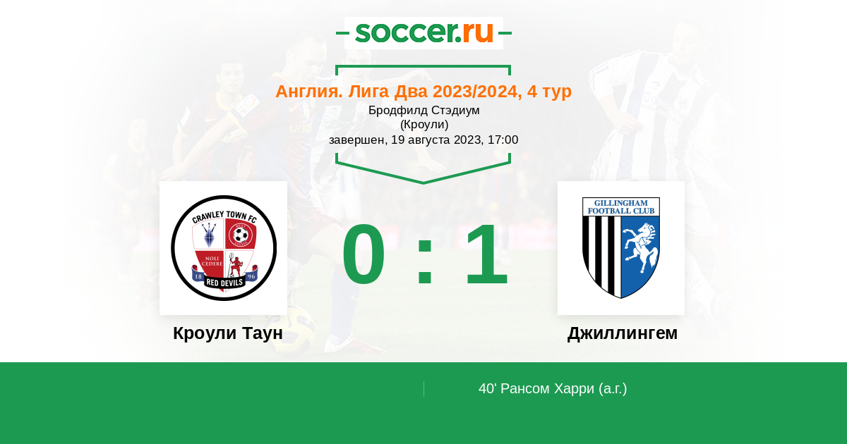 Англия. Вторая Футбольная Лига 26.12.2023 Джиллингем Логотип футбольный клуб Джиллингем 0:2 Логотип футбольный клуб Кроули Таун Кроули Таун