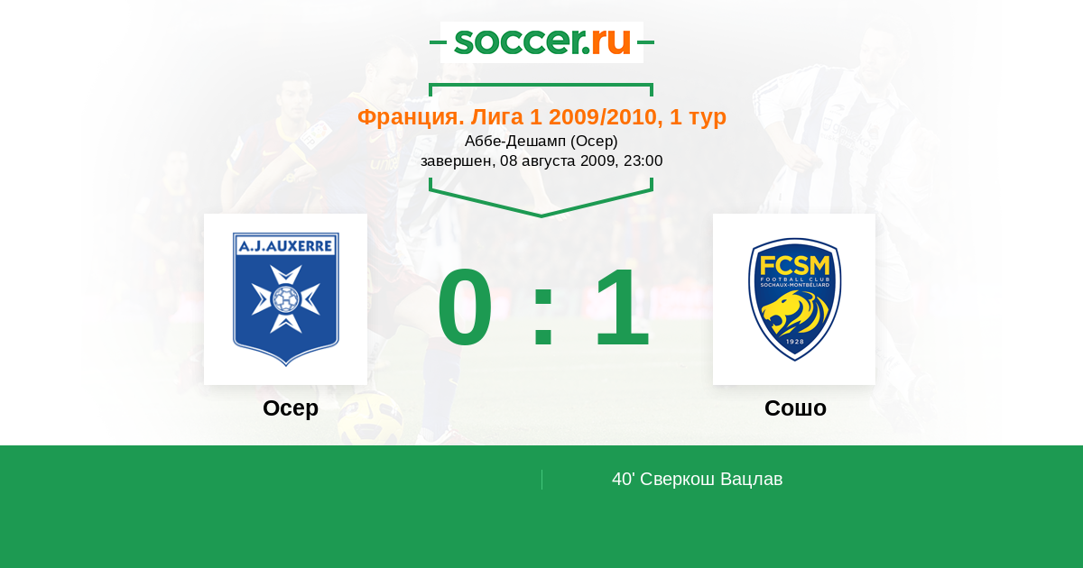 Франция. Лига 1 18.04.2009 Сошо Логотип футбольный клуб Сошо (Монбельяр) 0:1 Логотип футбольный клуб Осер Осер