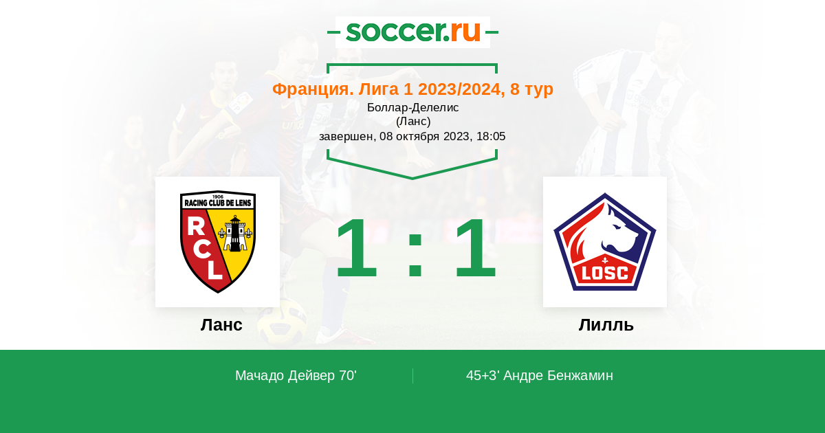 Франция. Лига 1 04.03.2023 Ланс Логотип футбольный клуб Ланс 1:1 Логотип футбольный клуб Лилль Лилль