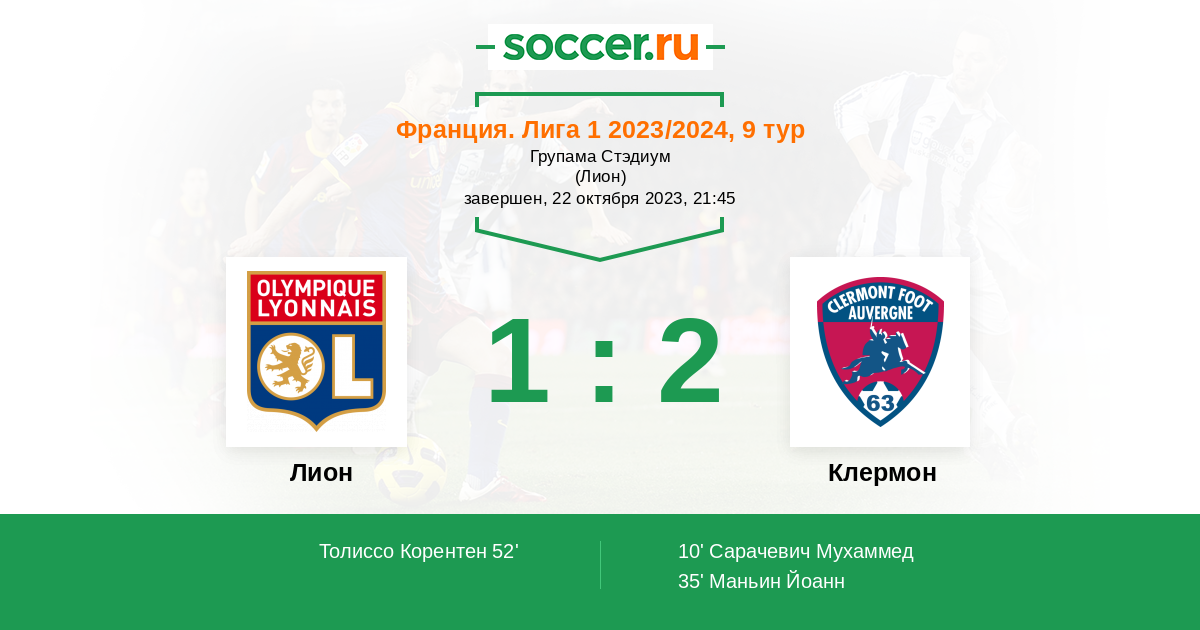 Два аутсайдера французской Лиги 1 Лион и Клермон без побед и с самой слабой атакой в чемпионате сегодня выясняют между собой отношения, но благодаря преимуществу своего поля хозяева одержат победу.