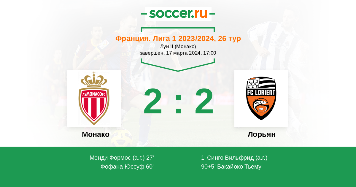 Франция. Лига 1 16.04.2023 Монако Логотип футбольный клуб Монако 3:1 Логотип футбольный клуб Лорьян Лорьян