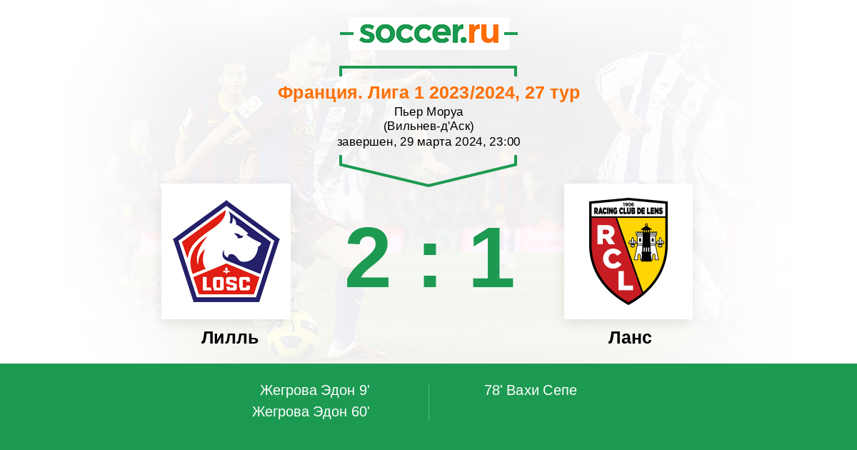 Франция. Лига 1 26.10.2024 Ланс Логотип футбольный клуб Ланс 0:2 Логотип футбольный клуб Лилль Лилль