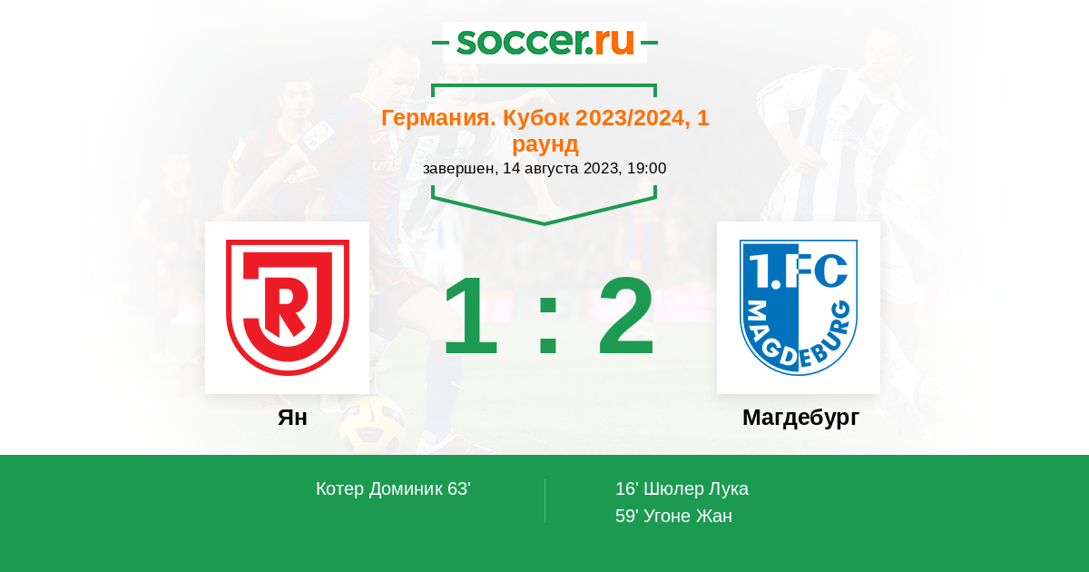 Ян - Магдебург ! 1 кубка Германии команды в прицепе забивные . Гости чуть повыше рангом - сделаю уклон на них и предположу , что они забьют минимум 2 . ТБ2 (2) .