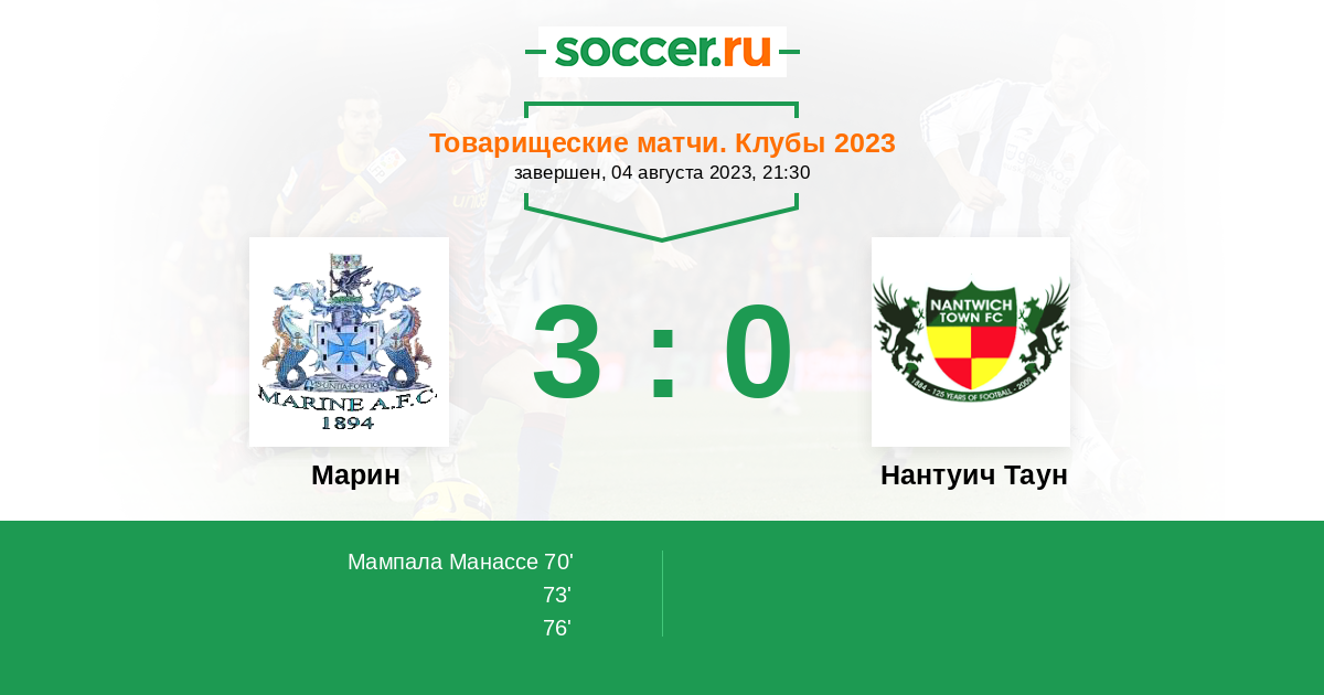 Англия. Истмийский дивизион 03.09.2013 Марин Логотип футбольный клуб Марин (Кросби) 1:0 Логотип футбольный клуб Нантуич Таун Нантуич Таун