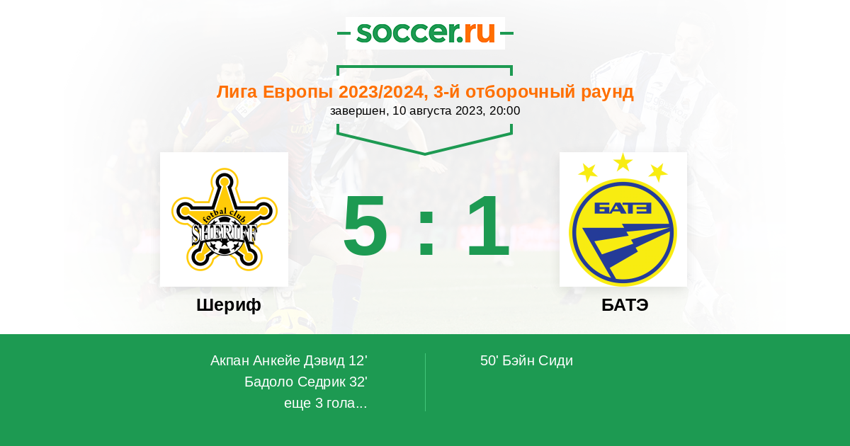 Шериф 3:6 0:1 3:5