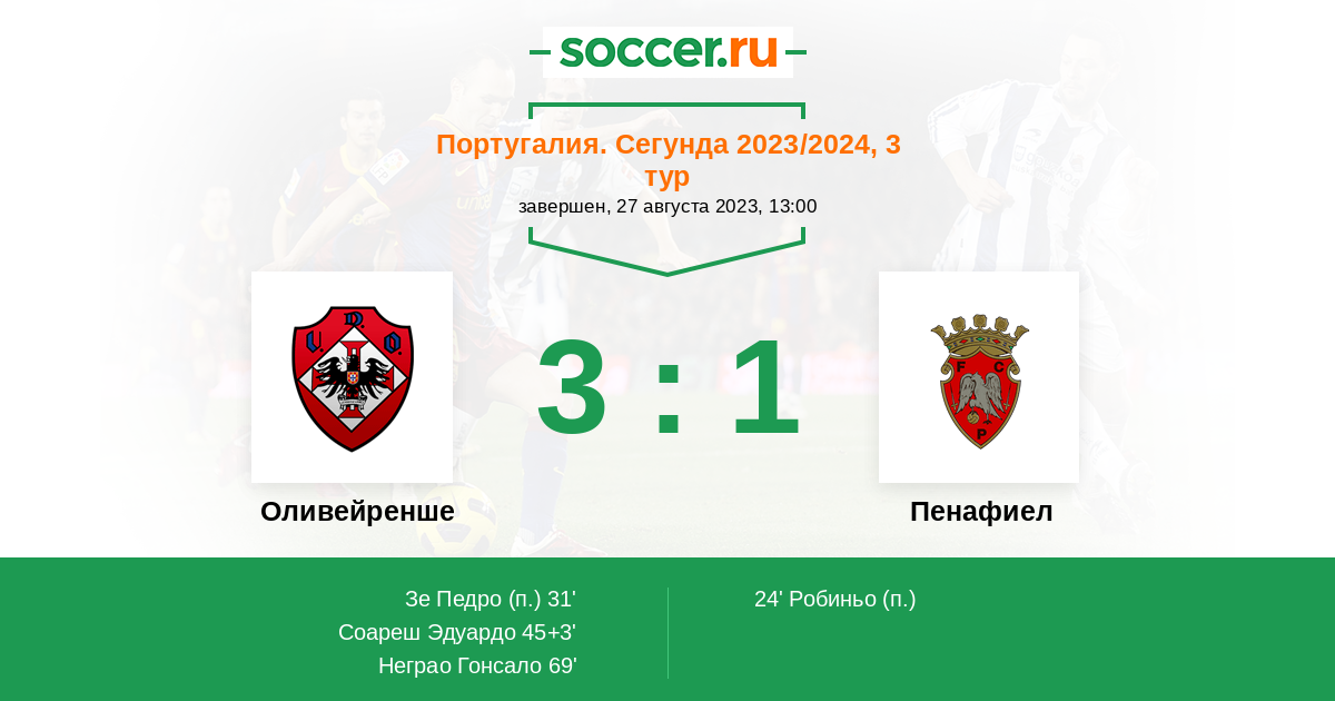 Португалия. Сегунда 11.08.2024 Пенафиел Логотип футбольный клуб Пенафиел 4:3 Логотип футбольный клуб Оливейренше (Оливейра-де-Аземейш) Оливейренше