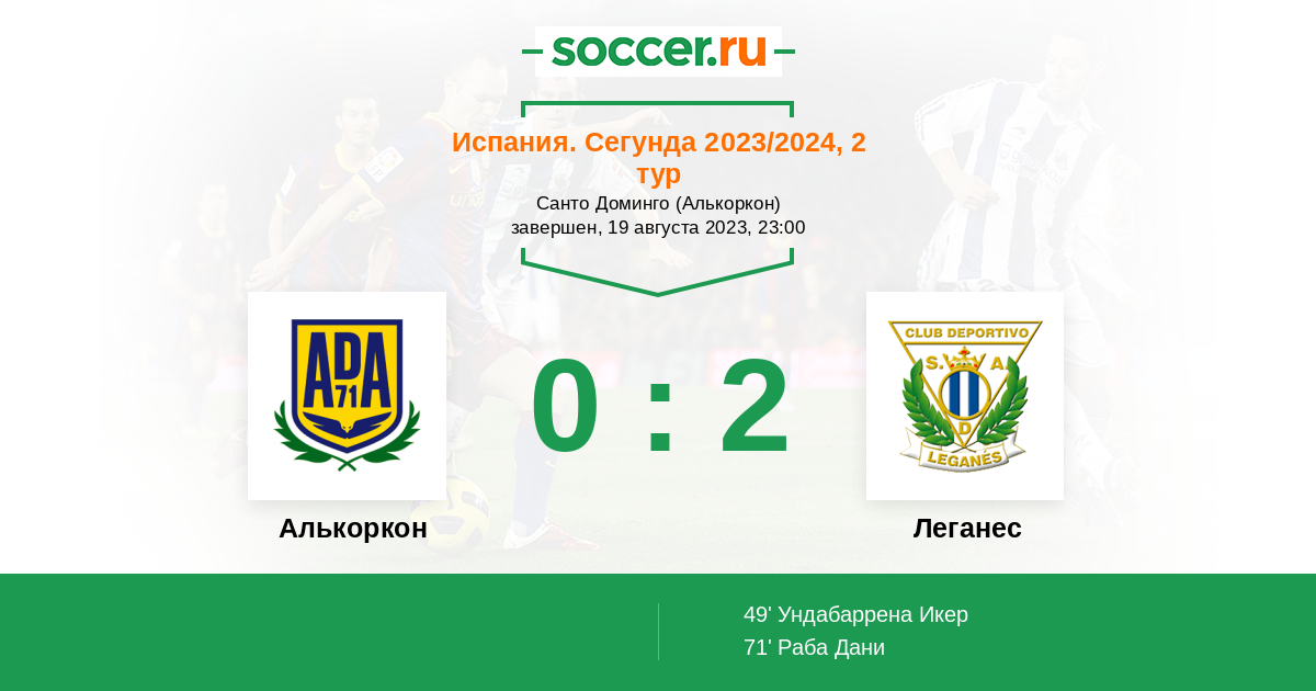 Товарищеские матчи. Клубы 07.08.2021 Леганес Логотип футбольный клуб Леганес 2:0 Логотип футбольный клуб Алькоркон Алькоркон