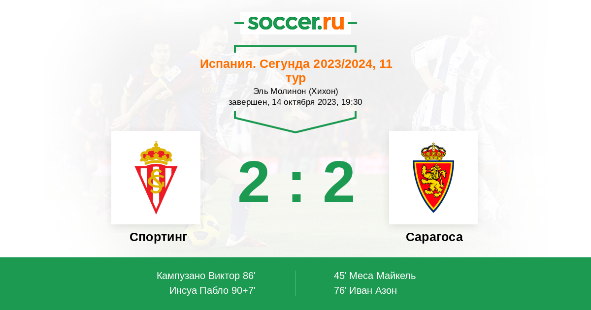 Испания. Сегунда 22.01.2023 Спортинг Логотип футбольный клуб Спортинг (Хихон) 1:0 Логотип футбольный клуб Сарагоса Сарагоса