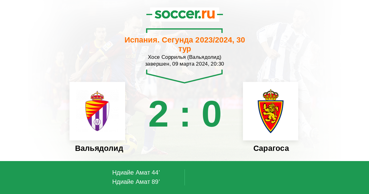 Испания. Сегунда 02.04.2017 Сарагоса Логотип футбольный клуб Сарагоса 1:1 Логотип футбольный клуб Вальядолид Вальядолид