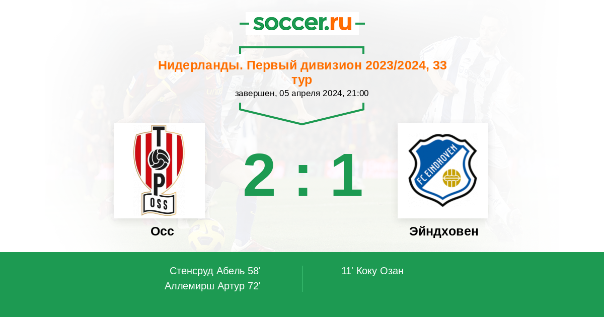 Нидерланды. Первый дивизион 28.04.2018 Осс Логотип футбольный клуб Осс 1:1 Логотип футбольный клуб Эйндховен Эйндховен