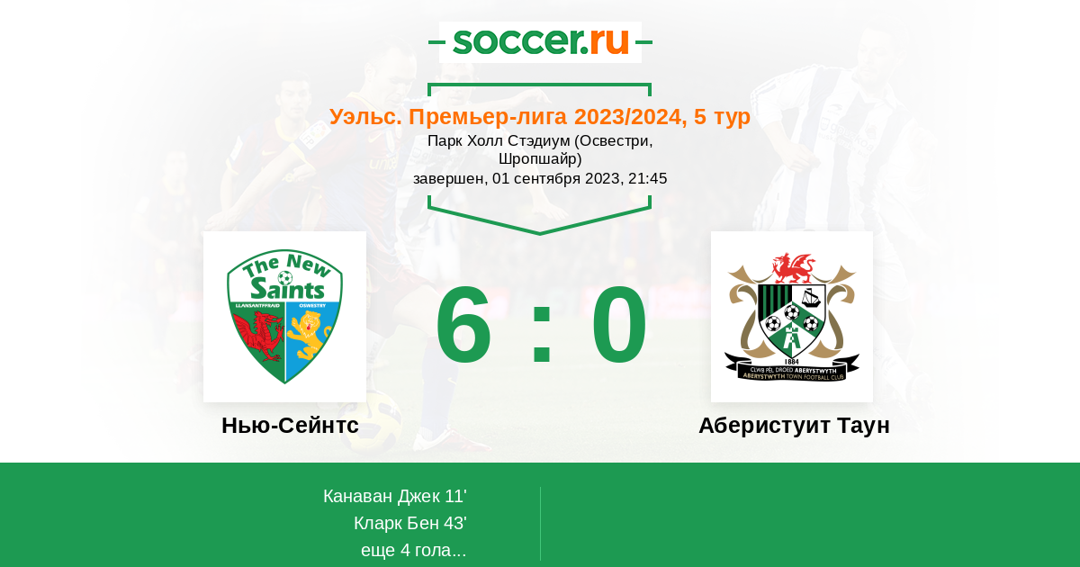 Уэльс. Премьер-Лига 02.12.2022 Нью-Сейнтс Логотип футбольный клуб Нью-Сейнтс (Ллансантффрайд) 11:0 Логотип футбольный клуб Аберистуит Таун Аберистуит Таун