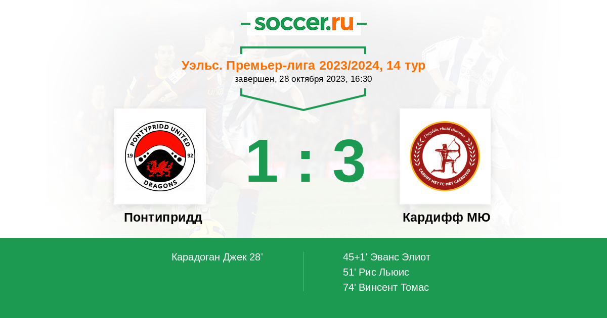 Матчи Уэльс. Премьер-лига 2023/2024
