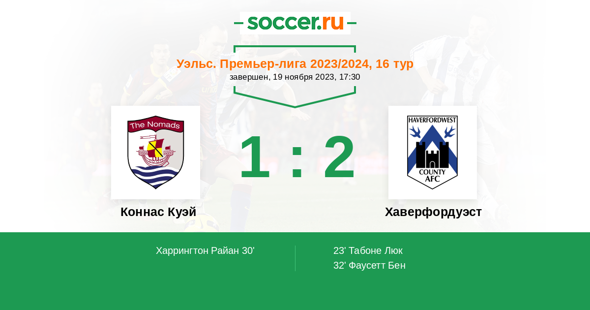 Уэльс. Премьер-Лига 23.09.2023 Хаверфордуэст Логотип футбольный клуб Хаверфордуэст 1:3 Логотип футбольный клуб Коннас Куэй Коннас Куэй