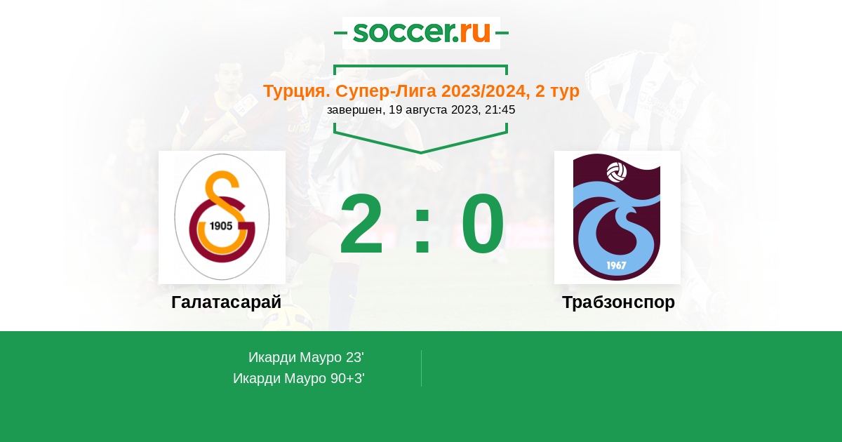 Турция. Суперлига 05.02.2023 Галатасарай Логотип футбольный клуб Галатасарай (Стамбул) 2:1 Логотип футбольный клуб Трабзонспор Трабзонспор