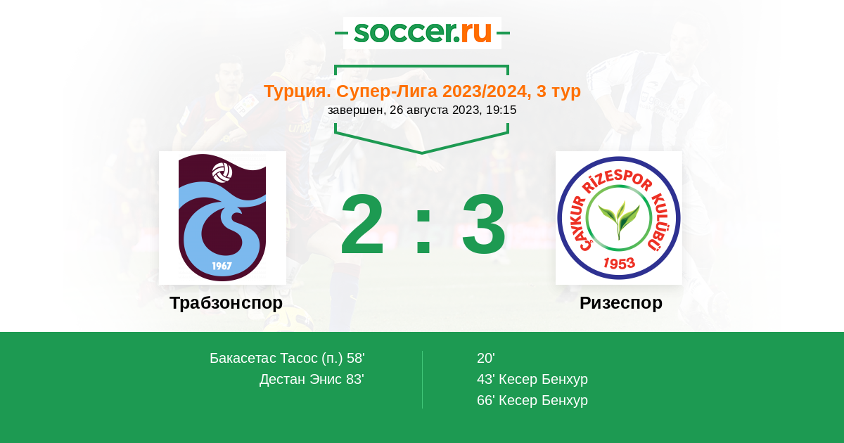 Турция. Суперлига 23.12.2018 Трабзонспор Логотип футбольный клуб Трабзонспор 4:1 Логотип футбольный клуб Ризеспор Ризеспор
