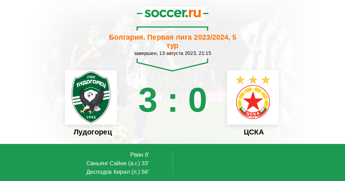 Болгария. Первая лига 10.08.2013 Лудогорец Логотип футбольный клуб Лудогорец (Разград) 3:0 Логотип футбольный клуб ЦСКА (София) ЦСКА