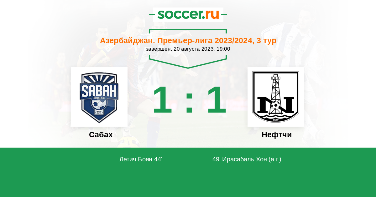 Азербайджан. Премьер-Лига 19.08.2019 Нефтчи Логотип футбольный клуб Нефтчи (Баку) 1:1 Логотип футбольный клуб Сабах (Баку) Сабах