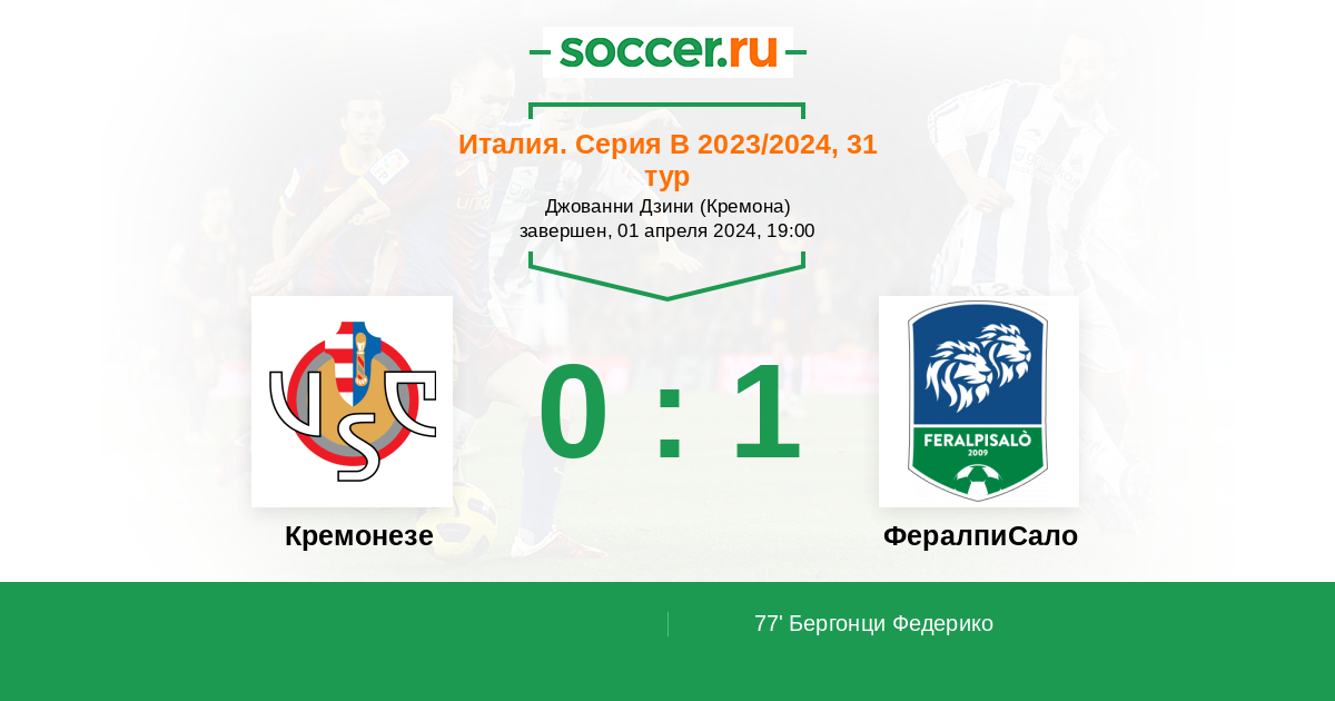 Кремонезе 0:1 0:0 0:1