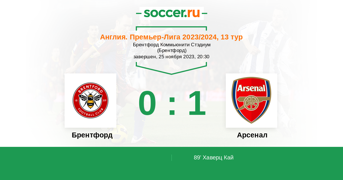 Англия. Премьер-Лига 09.03.2024 Арсенал Логотип футбольный клуб Арсенал (Лондон) 2:1 Логотип футбольный клуб Брентфорд (Лондон) Брентфорд