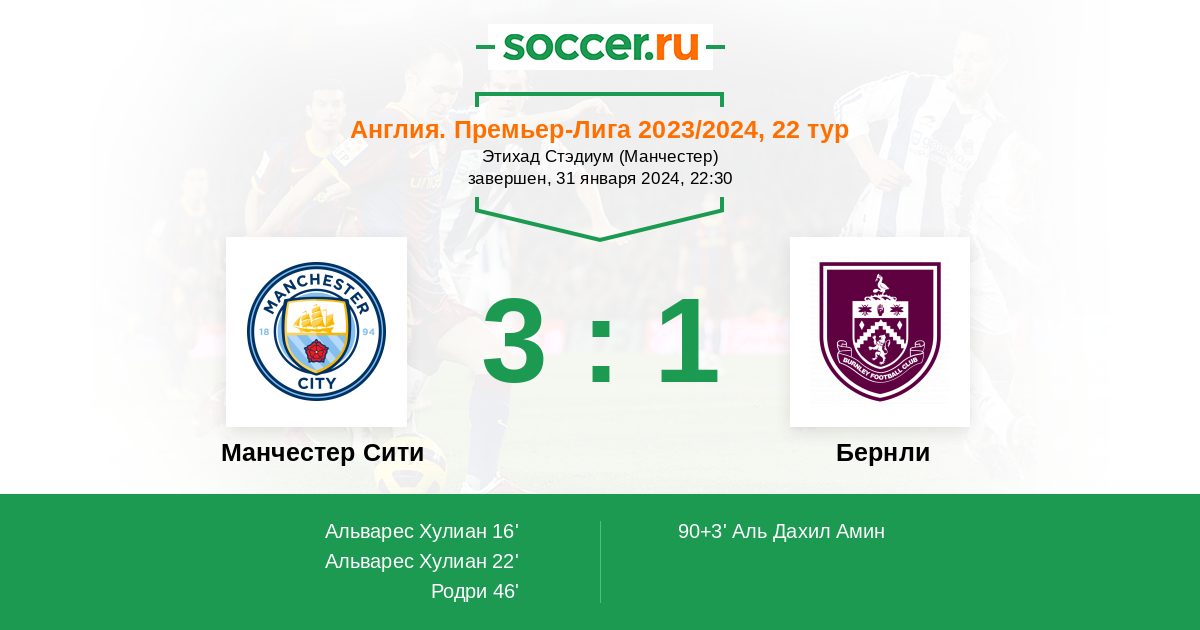 Англия. Премьер-Лига 02.04.2022 Бернли Логотип футбольный клуб Бернли 0:2 Логотип футбольный клуб Манчестер Сити Манчестер Сити