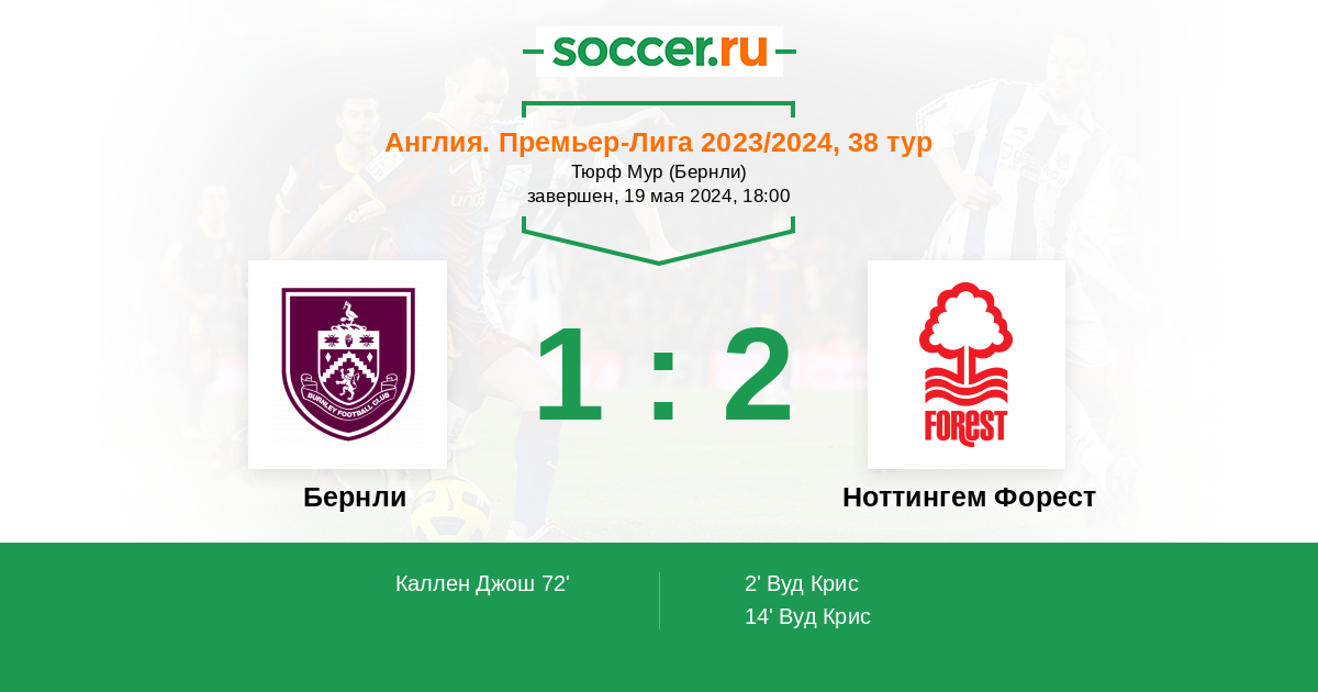 Англия. Премьер-Лига 18.09.2023 Ноттингем Форест Логотип футбольный клуб Ноттингем Форест 1:1 Логотип футбольный клуб Бернли Бернли