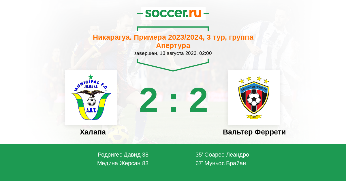 Никарагуа. Примера 08.04.2024 Халапа Логотип футбольный клуб Халапа (Окоталь) 2:0 Логотип футбольный клуб Вальтер Феррети (Манагуа) Вальтер Феррети