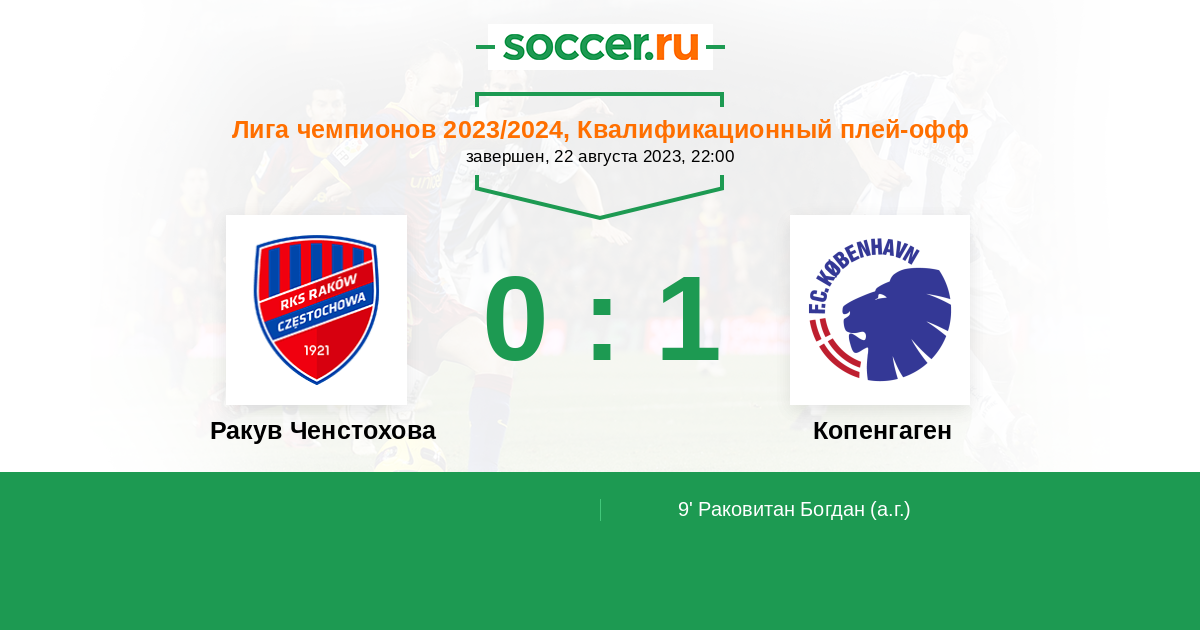 Ракув в шаге от группы Лиги чемпионов в свой первый же сезон в турнире. Соперник у поляков не простой и опытный. Но если посмотрим на путь Копенгагена до этого раунда, то видим погром чемпиона Исландии, где Брейдаблик тоже забил немало. А Спарту Копенгаген прошёл вообще только по пенальти. Так что не всё так прекрасно в датском королевстве. И скромный но боевой Ракув вполне способен пройти последний барьер перед групповой стадией