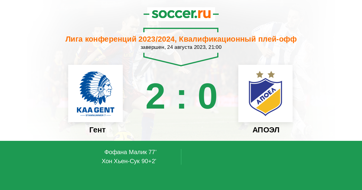 Гент 2:1 0:0 2:1